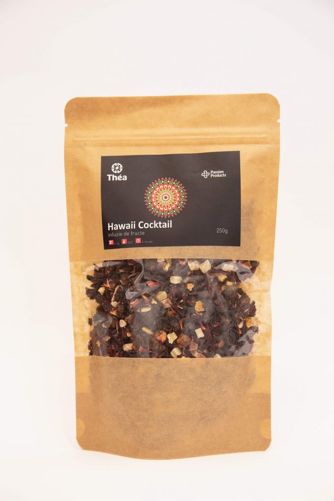 Ceai de fructeIngrediente hibiscus, struguri, coajă de măceșe, ananas, papaya, coajă de citrice, mango, arome naturale